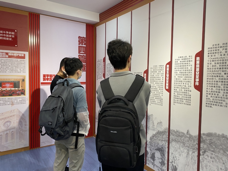 首先,学员们来到天赐庄校区博物馆1楼展厅,共同参观了“‘新时代·新国安·新征程’国家安全教育进校园主题展”。本次主题展览包含五个篇章和一个保密教育分展,主要展示了习近平总书记关于总体国家安全观的重要论述、国家安全体系各领域的内涵、关于公民和组织在维护国家安全方面的义务和权利及警示案例、天博体育近年来在坚持维护国家安全方面所做工作和成果以及新时代大学师生该如何采取措施,积极维护国家安全。紧接着,大家又通过本次保密教育分展,重点了解了当前保密工作的形势任务、法律法规、高校涉密的典型案例和安全防范措施等,提升了保密防护能力,真正做到懂保密、会保密、善保密。