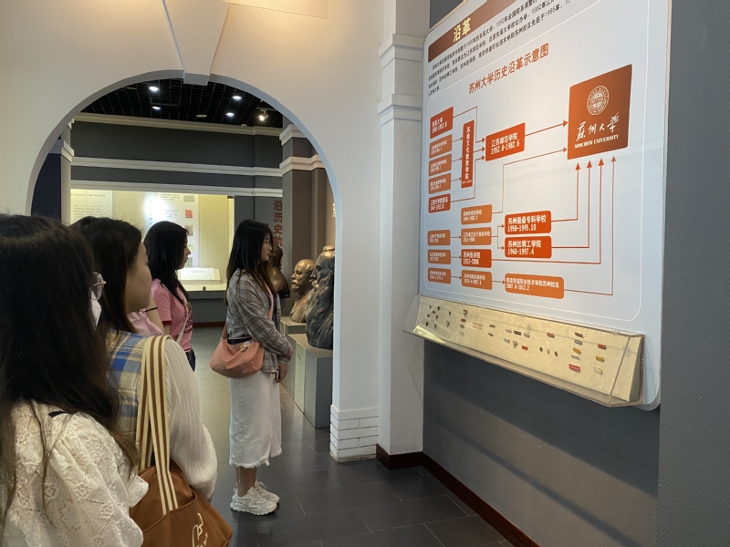 随后,学员们步入校史馆,深入了解天博体育 建校历史。大家分别参观了东吴碑廊展厅、跨越百年流芳展厅、司马德游泳池、艺苑菁华展厅、古籍馆和文物荟萃展厅,在各展厅中领略天博体育 的百年文化底蕴和悠久历史,学习前辈们艰苦奋斗、锐意进取的精神,从文物古籍中与历史对话,拓宽知识面、开拓眼界。