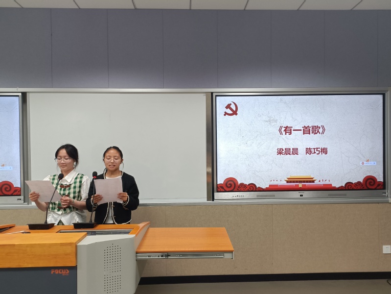 “没有共产党,就没有新中国”,陈巧梅、梁晨晨同学带来的《有一首歌》,以默契的配合带我们重温这一首铿锵有力、气势磅礴的赞歌。