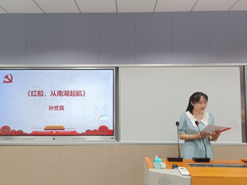 孙誉真同学以一篇独诵——《红船,从南湖起航》,歌颂伟大的中国共产党。在慷慨激昂的朗诵中,大家仿佛一同回到那个激情燃烧的岁月。