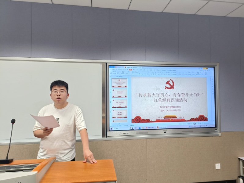 为深入学习贯彻习近平新时代中国特色社会主义思想,缅怀革命先烈的英雄事迹,感受革命先辈的崇高精神,坚定青年学生跟党走的信念,鼓励青年大学生为实现中华民族伟大复兴而贡献青春力量,天博体育 分党校于2023年5月26日晚成功举办了“传承薪火守初心,青春奋斗正当时”红色经典朗诵活动。第一期入党积极分子培训班学员参与此次活动,活动由2020级社会学专业龙超腾同学主持。