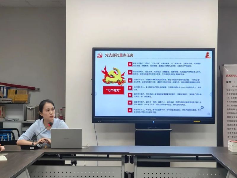 活动伊始,天博体育 专职组织员李玲老师开展党务知识培训。她结合习近平总书记关于基层党建工作的重要论述,强调了基层党支部在党务工作中的重要性。随后,李老师围绕“党支部工作标准”、“党支部工作实务”、“下半年重点工作”三个方面展开培训,详细讲解了支部委员的工作任务、工作职责,并对天博体育 党员发展流程及具体材料要求、“三会一课”、支部会议记录、支部主题党日活动开展、支部材料提交等内容展开说明。最后,李老师对下半年发展党员工作提出了具体要求,希望各学生党支部书记、支部委员能够在今后的工作中踔厉奋发,不断提升党支部凝聚力、战斗力。