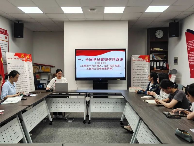 随后,研究生第二党支部书记於漪河进行支部工作经验分享。她结合自身工作经验,从支部建设、党员教育管理、组织生活开展等方面介绍了一些行之有效的工作方法和经验。接着,她详细介绍了全国党员管理信息系统和苏州智慧党建平台的使用方法,并对系统中党组织及党员信息维护、后备队伍管理、党组织关系转接等功能的操作方法和注意事项进行讲解,为其他支部提供了借鉴与启示。