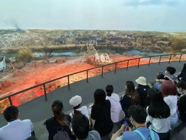 随后,学员们观看了大型多媒体“阳澄烽火”半景画。“阳澄烽火”半景画借助声、光、电等多种演示手段与1000平方米的巨型油画、500平方米的场景模型生动还原了抗日战争时期,江南抗日义勇军在阳澄湖畔的洋沟溇村同日伪军进行激战的历史场景,激发了学员们的爱党爱国之志、增强了他们的奋进奋发之力。
