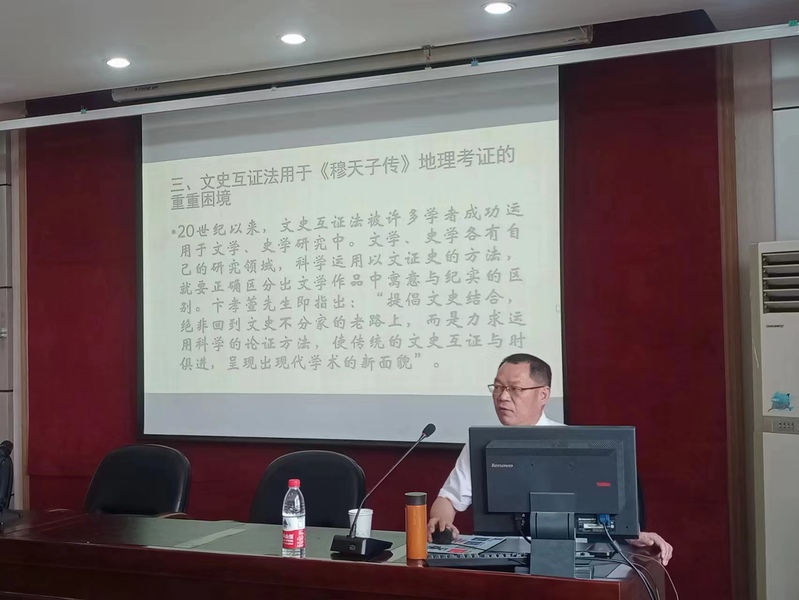 他认为,在新的学术背景下,多学科视野下的《穆天子传》研究,应正视《穆天子传》以小说、神话为主,兼具多学科价值的文学类文献的体裁性质,准确把握《穆天子传》的产生背景、著述动机和意图;重视综合研究与比较研究,拓展与深化《穆天子传》的研究领域,开展跨学科研究;推进《穆天子传》研究范式从传统考据学向文化阐释学与跨文化研究转变,重视信仰、观念史等领域的研究,认为今后《穆天子传》研究需要呈现出新的学术面貌。周书灿教授在整个讲述过程中,语言幽默风趣,通俗易懂,现场氛围轻松、活跃。