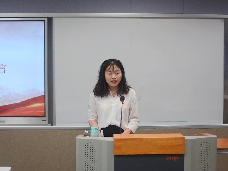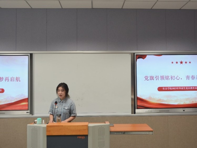 紧接着,2020级档案学专业李晓梅同学代表毕业生党员发言。李晓梅带领大家回望了第一堂党课与在天博体育 一同奋斗的同窗时光。她呼吁大家以优秀党员的标准严格要求自己,努力学习,扎实工作,争取在未来的工作中取得更大的成绩,不辜负母校的培养,不辜负老师的教诲,牢记“养天地正气,法古今完人”的校训,做社会栋梁,为母校争光。