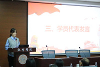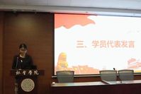 紧接着,培训班学员代表分别发言。积极分子班学员代表、2024级图书情报专业研究生贡彦茹同学表示,将倍加珍惜此次宝贵的学习机会,不断提高思想认识,坚定理想信念,努力勤奋学习,提高自身素质。发展对象班学员代表、2022级社会学专业王思蕾同学回顾了自己在分党校培训学习的经历,强调了培训学习对其个人成长的重要性,特别是在理论水平、党性修养等方面的显著提升。她提到自己参加“党建书屋”活动的感悟,并分享了自己阅读好书《光明的摇篮》的心得体会。预备党员班学员代表、2022级劳动与社会保障专业王靖仪同学分享了她参与“追寻先辈足迹,赓续红色使命,重温先辈爱国革命精神”主题实践活动的体悟。各类实践活动不仅提升了她的思想觉悟,也加深了她对党史的理解,坚定了为中华民族伟大复兴不懈奋斗的决心与使命。