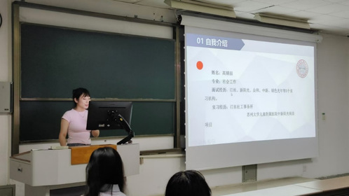随后,2023级社会工作专业高婧喆同学带来了关于实习经历与职业规划的分享。她结合自身多次实习的经历,从获取实习信息、实习过程中的挑战到与导师、同事的沟通技巧,为新生们提供了全方位的指导。她鼓励新生们珍惜每一次实习机会,在实践中不断积累经验、完善自我,为职业生涯的开启做好充足的准备。