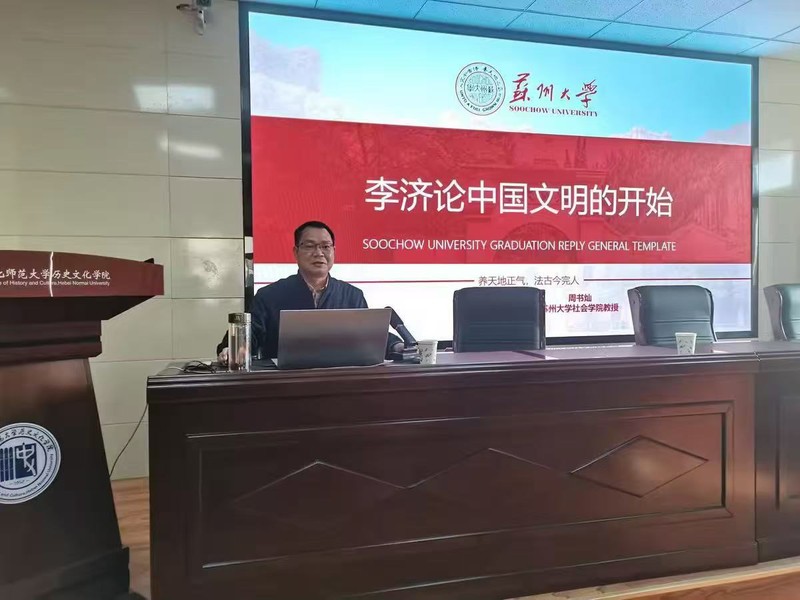 会议前夕,10月23日、24日,应信阳师范大学、河北师范大学邀请,周教授以《李济论中国文明的开始》为题,为两个天博体育 历史文化天博体育 师生各做了一场精彩的学术报告。