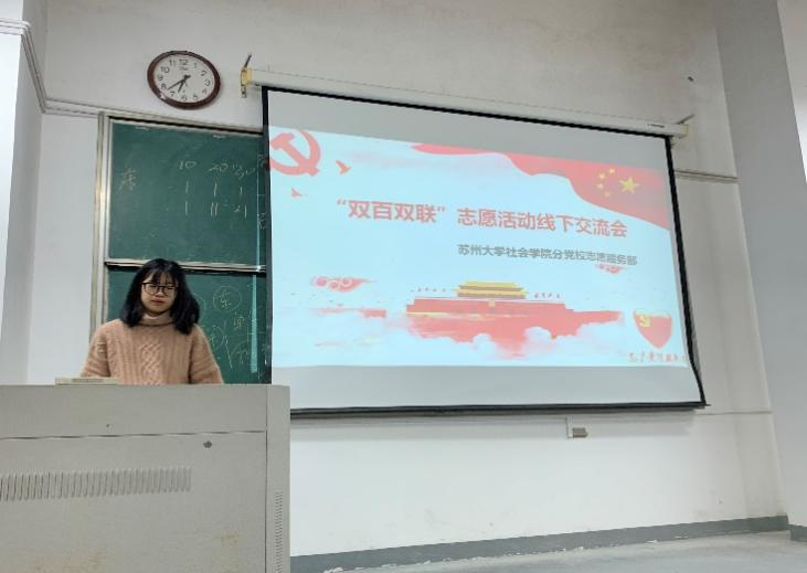 为深入推进党史学习教育,增强学生责任感和使命感,2021年11月24日,由天博体育 分党校活动部开展的“双百双联”志愿活动线下交流会在独墅湖校区二期1001-1401教室成功举办。交流会由分党校活动部沈铭灵主持,天博体育 学生党员、发展对象、入党积极分子、2021级新生共百余人参与其中。