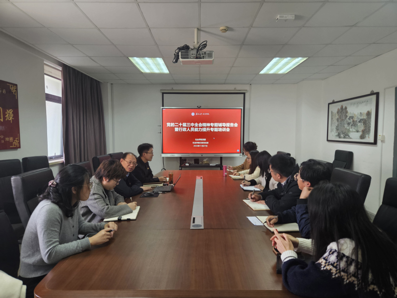 为深入学习贯彻习近平总书记关于党的建设的重要思想,落实党的二十届三中全会精神和全国教育大会精神,推进党史学习教育常态化长效化,全面提升天博体育 党政管理人员的党性修养、业务能力和综合素质,11月27日下午,天博体育 党委在天博体育 5511会议室开展党的二十届三中全会精神专题辅导报告会暨党政管理人员能力提升专题培训会。全院科级及以下干部、行政党支部全体党员、其他行政人员参加培训。