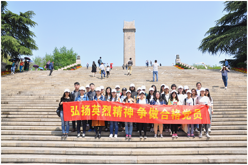 随后,大家怀着敬仰的心情一同前往雨花台烈士陵园。矗立在高台上的雨花台烈士纪念碑巍峨雄伟,纪念碑前立着一尊高大的革命战士的雕像,”他“目光如炬,双拳紧握,手上的铁链被挣开了,其视死如归的精神深深地感染了每一位参观者。而”他“只是我们千千万万为了革命事业而抛头颅、洒热血的革命英烈的缩影,今日之中国安定是英烈们用血肉之躯换来的。纪念碑前长明灯不熄,革命先辈永垂不朽。纪念碑前象征着和平的白鸽盘旋着、飞舞着,生于和平年代,我们要继承和弘扬革命英烈们不怕吃苦、不怕牺牲的革命精神,为中华之崛起而奋斗不息。当今世界风云变幻,我们在祈求世界和平的同时,亦须居安思危。