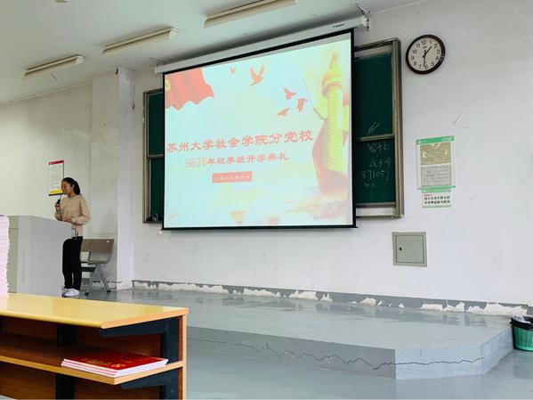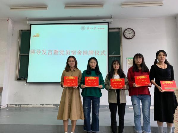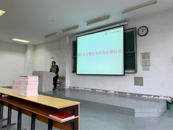 2019年10月23日下午,天博体育 分党校2019年秋季培训班开班典礼在文综楼1101教室正式召开,活动包括党员宿舍挂牌仪式和第八期入党积极分子培训班、第六十二期党的基础知识培训班、第四十一期预备党员培训班的开班仪式。