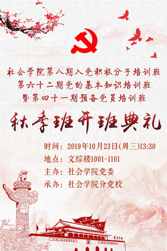 预告|天博体育 分党校2019年秋季班开班典礼(海报)