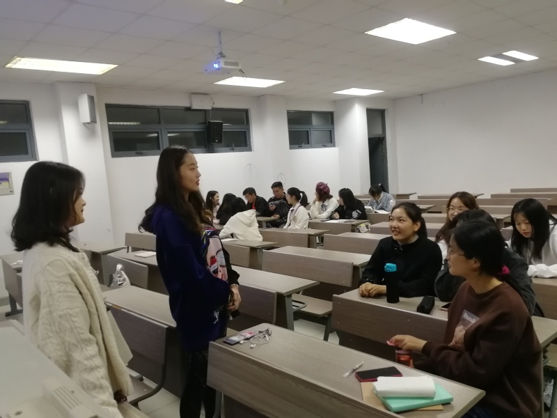 本次活动主要包括两个部分。首先由方茵同学主持,为新生们介绍讲解入党流程和发展程序,阐述了从递交入党申请书至成为正式党员各个环节的工作和程序,包括注意事项、细节要点、期限要求、材料审核等等,并提出一些中肯的建议——鼓励新生以学业为主,以社会工作为辅,两者相辅相成,并保持一定的平衡,做到“两手都要抓,两手都要硬”。此后,方茵同学与在场的新生互动,解答疑惑,使新生对入党流程有了基本的概念和了解。