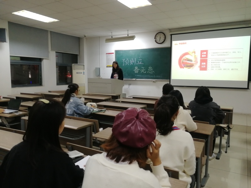 为贯彻和落实新时代党的建设总要求和新时代党的组织路线,推动以习近平新时代中国特色社会主义思想为主要指导理论的实践,增强基层党支部的活力、创造力、凝聚力,发挥大学生党员的先锋模范作用,以“党员带新生”、“优生带新生”为抓手,引导大学新生做好个人学习生涯规划,中共天博体育 本科生第二支部委员会于10月29日晚上六点半,在文综楼1002-2016举办“成长相随,继往开来”的十月系列活动——预则立,备无患。本次活动为党员和新生自愿报名参加。