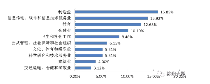 从就业行业产业的分布来看,前十位就业行业产业与天博体育 整体专业的匹配度较好,这表明天博体育 本科人才培养专业具有较强的覆盖性,布局基本合理。