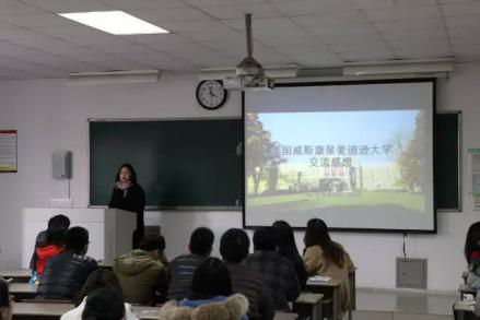 首先,梅琳老师对本次海外交流项目进行了展示,其后介绍了海外学习交流项目的概况和各项准备事宜。梅琳老师再三强调语言的重要性,强调大一、大二是大学之中提升成绩的黄金时段,要拼力为大学及未来的前程奠定良好基础。
