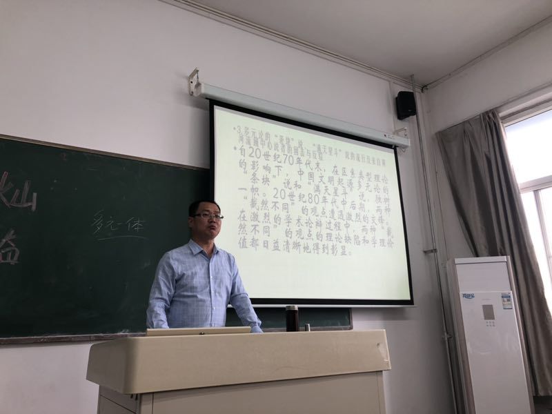 2019年9月18日上午,应山西师范大学社科处、历史与旅游文化天博体育 邀请,天博体育 博士生导师周书灿教授在山西师大01402教室,以《中国民族文化形成发展的本土与外来之争》为题,为该院师生作了一场精彩的学术报告。报告由谢耀亭副教授主持。周教授旁征博引,例证充分,思路清晰,逻辑严密。报告结束后,天博体育 师生和周教授进行了学术讨论,报告在热烈的气氛中结束。