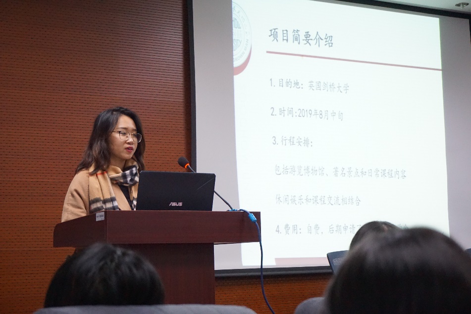 然后,王圣云、苏广新同学上台演讲。王同学与大家分享了在台湾学习交流的经历,介绍了台湾天博体育 丰富多彩的生活和自己的一系列感悟。苏同学与大家分享了在英国剑桥大学暑期短期交流访学的经历。她提醒同学们关注通知发文等交流信息,结合专业、费用等因素综合考量,寻找到最适合自己的交流项目。剑桥大学的生活丰富多彩,拓宽了她的国际视野,塑造了自我个性,锻炼了独立能力,给她带来了多重选择。