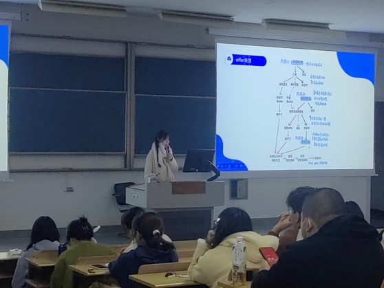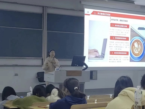 紧接着,2021级社会学专业池瑞华同学就职业规划经验进行分享。她结合自身实习经历,向大家分享了一些实习方法与技巧。池瑞华建议同学们积极关注实习信息,例如通过各大就业平台、微信公众号、天博体育 就业信息群等途径获取实习信息。除此之外,她还鼓励同学们多向师兄、师姐们请教,获得最直接、真实的经验,为就业做好准备。