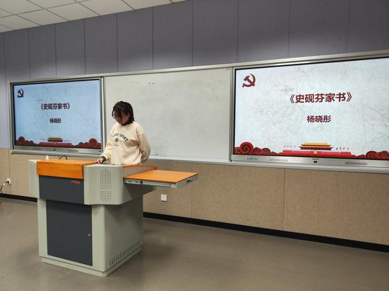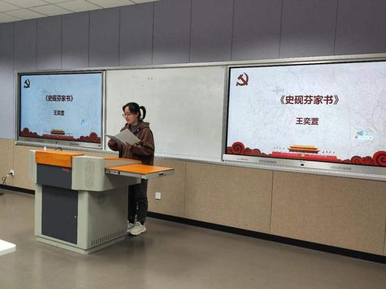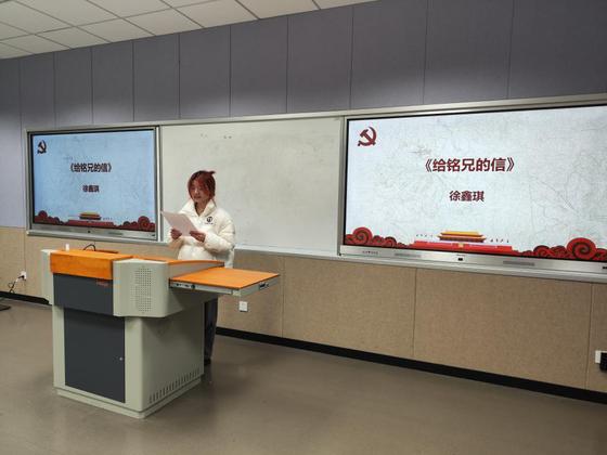 王奕萱同学带来《史砚芬家书》,她饱含深情地诵读出了史砚芬烈士对未成年弟妹的殷切嘱托和不灭的革命精神,星星之火,代代相传,照亮共产主义的前行之路。