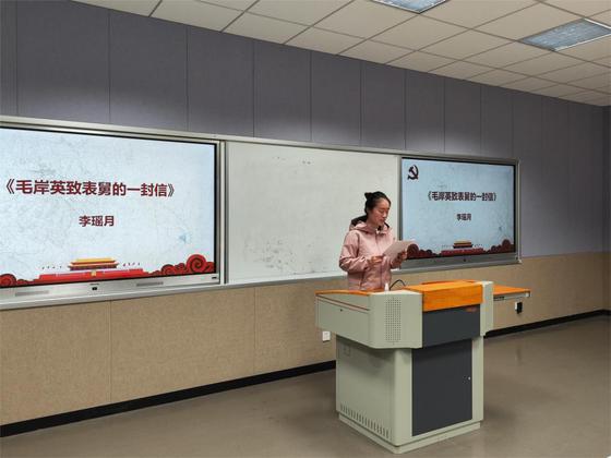 李瑶月同学带来《毛岸英致表舅的一封信》,表达了中国共产党对一步登天的“做官”思想的批判,赞美了中国共产党拥有的对人民无限热爱的“人情”,展现了中国共产党自始至终不徇私情,以人民为中心的初心和使命。