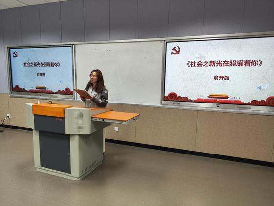 俞开颜同学声情并茂地朗诵了《社会主义之新光照耀着你》,表达出革命家冷少农希望儿子认真读书,不负家庭、不负祖国的殷殷期盼,饱满的情绪打动学员。