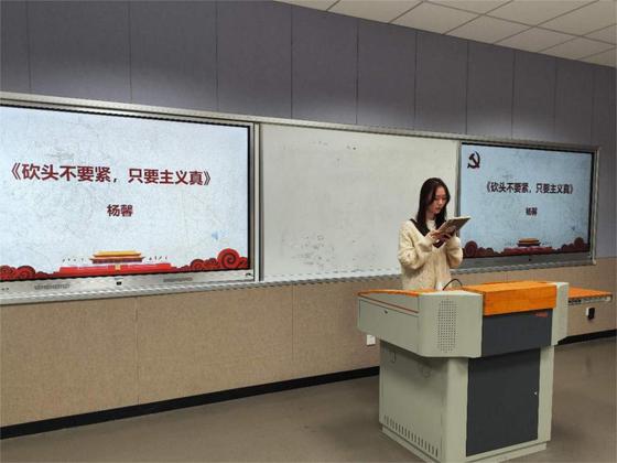杨馨同学以一篇《砍头不要紧,只要主义真》,真情实感地表现出夏明翰烈士为革命英勇就义的碧血丹心,热烈的情感激励着一代又一代的共产主义者。