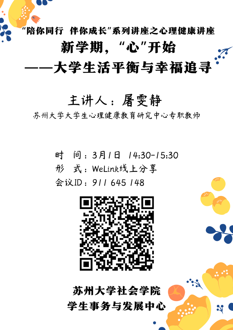 天博体育 “陪你同行,伴你成长”系列讲座之新学期,“心”开始——大学生活平衡与幸福追寻