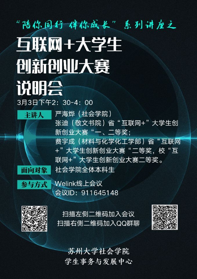 天博体育 “陪你同行,伴你成长”系列讲座之互联网+大学生创新创业大赛说明会