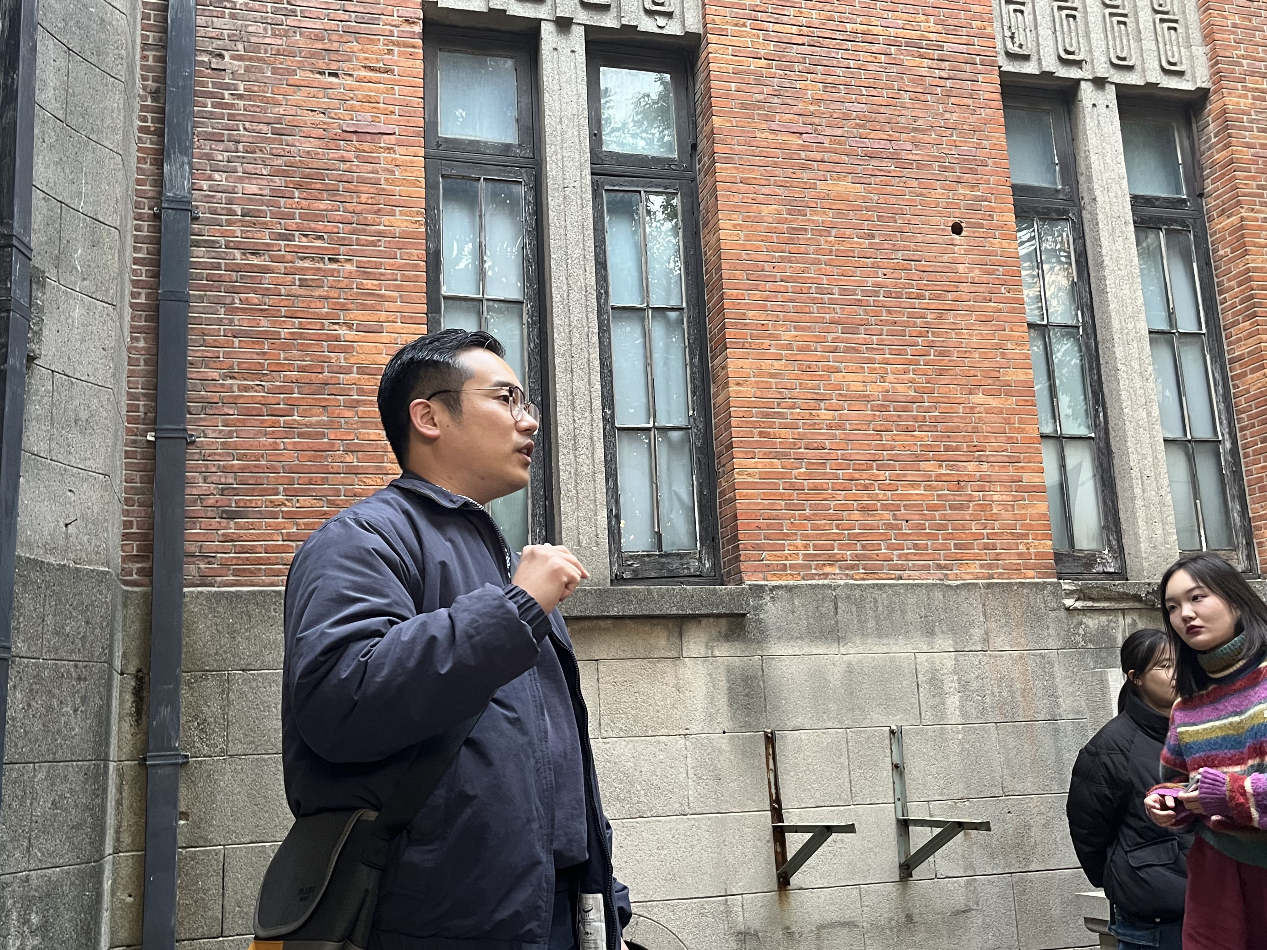随后同学们来到了苏纶纱厂旧址所在地。纱厂始建于1895年,在中国近代工业史上有着重要地位,百年苏纶也在苏州人民心中留下重要印迹。在这里唐烨栋同学向大家介绍了纱厂的历史。令人遗憾的是这座曾经的大厂如今只剩下几座厂房与宿舍,供后人想象曾经的辉煌。