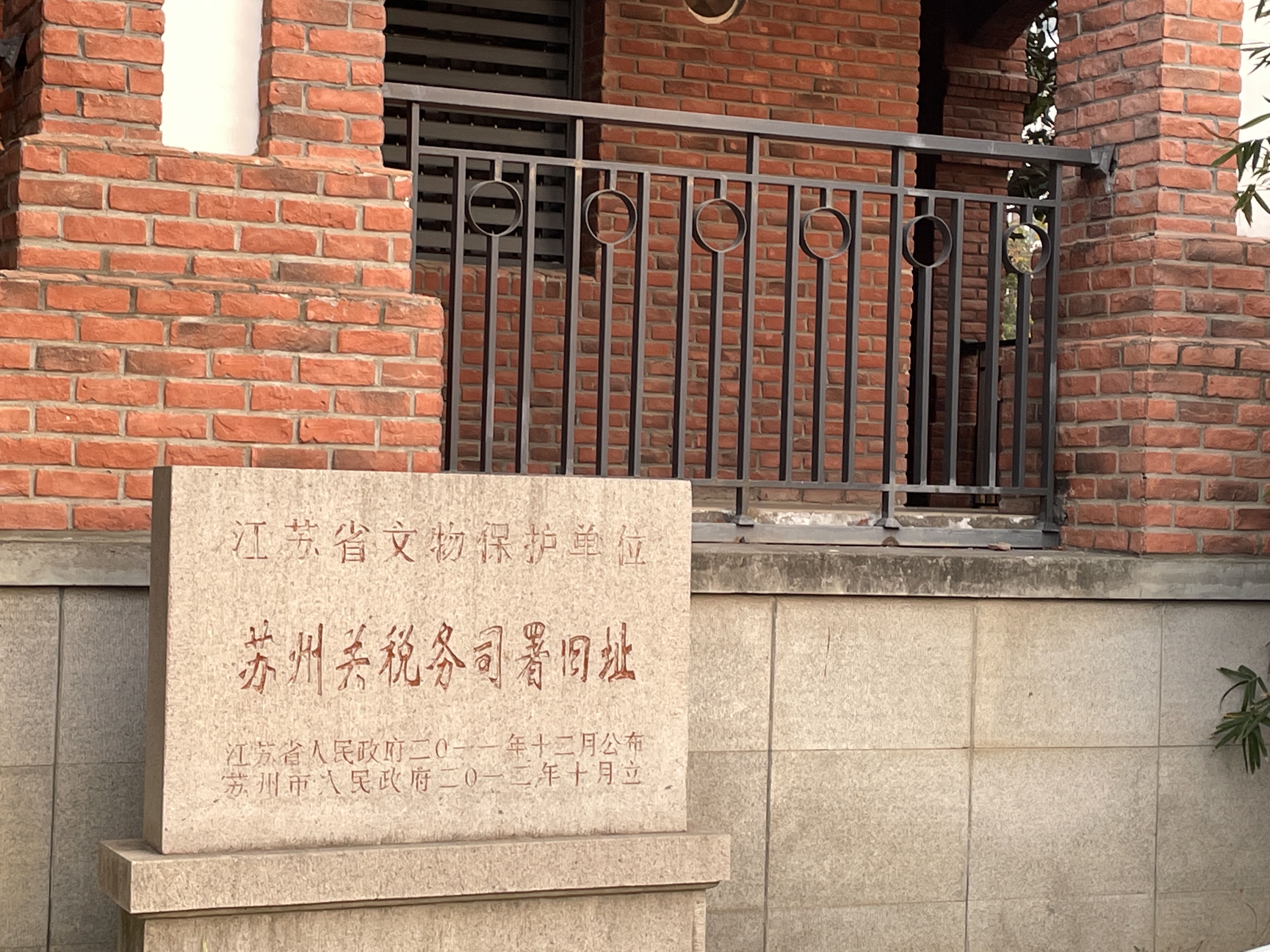 之后同学们乘车来到苏州关税务司署旧址,此地由缪晓婉同学向同学们介绍。1896年苏州海关正式开关。为了处理相关事务,清政府于苏州葑门外觅渡桥西建立了海关税务司署,税务司负责办理报关、纳税及查禁走私业务,此外还需负责征收苏州、淞沪两处厘金,关税事务司成为了苏州与世界连接的窗口。不过如今其旧址也仅留下几栋小楼作为历史的余音。