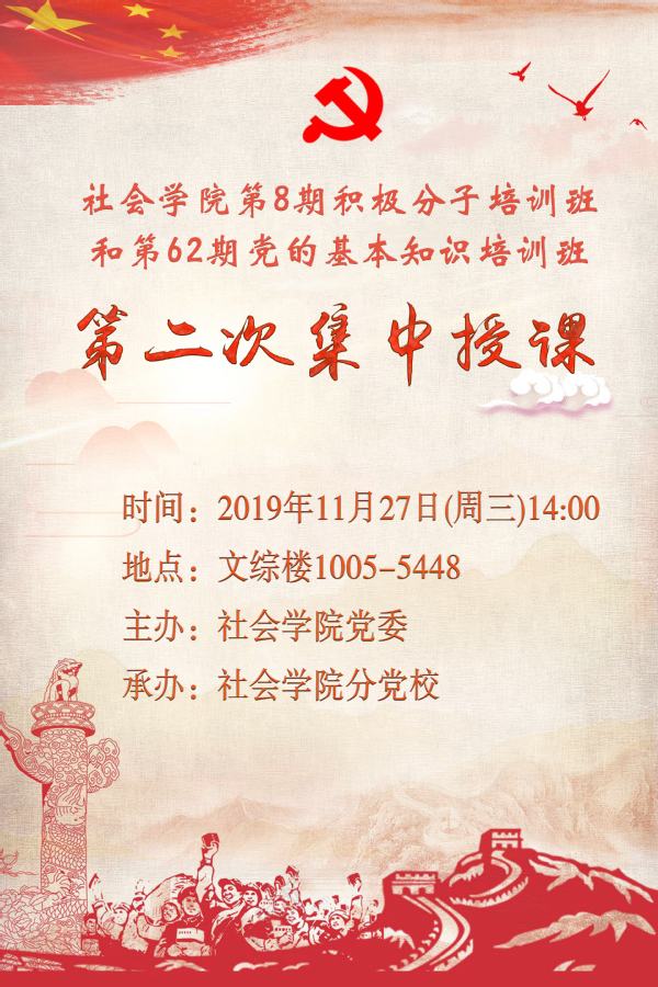活动|天博体育 第8期入党积极分子培训班和第62期党的基本知识培训班第二次集中授课(海报)