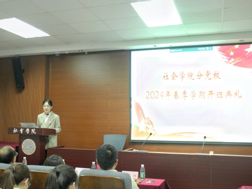 分党校活动部负责人刘瑞同学详细介绍了本期培训班的特色活动。本期党建书屋系列活动以“学党史,守初心,强信念”为主题,以阅读红色书籍为中心内容,通过主题读书会、经典好书师生共读的形式,引导培训班学员提高党性修养,增强爱国主义情感。同时,分党校将举办各类主题实践活动,通过探访红色踪迹,帮助培训班学员更加深入地了解党的奋斗历程和中华民族的伟大精神,不断提升理论知识水平,传承和弘扬红色基因。此外,分党校举办的各类特色活动为学员思考时代议题、展现新时代青年风采提供了平台。最后,她呼吁同学们积极参与到各类主题活动中,在活动中促进个人成长、提升品德修养。