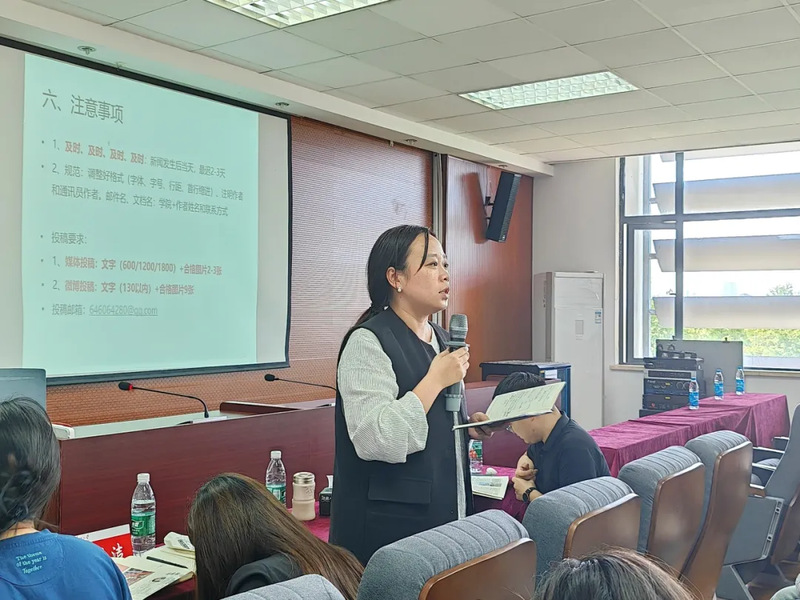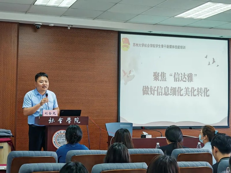 “信”即信息的真实性、准确性,是信息传播的基础;“达”则是信息的清晰度、流畅度,要求信息能够准确无误地传达给受众;“雅”则代表着信息的美观度和文化底蕴,使信息在传达过程中更具吸引力和感染力。刘老师围绕“信达雅”三字,讲述了校新媒体中心在讲好苏大故事,传播好苏大声音上的宝贵经验。
