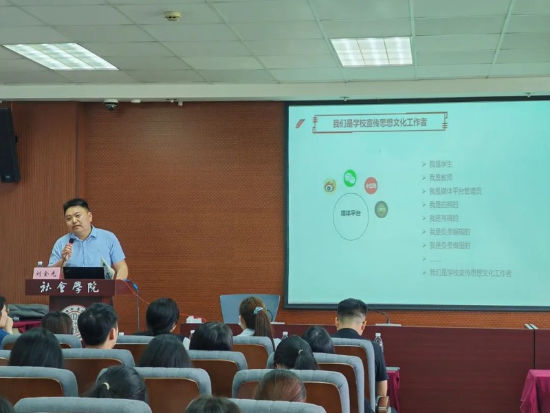为进一步增进天博体育 学生骨干的新媒体技能,推动学生工作进一步的高效开展。2024年5月15日下午,“聚焦‘信达雅’,做好信息细化美化转化”天博体育 学生骨干新媒体技能培训在1005-5448顺利举行。本次培训由天博体育 党委宣传部刘金光老师主讲,出席本次活动的有天博体育 党委副书记、副院长朱今,团委副书记朱星洁、贾扬娣,2022级本科生辅导员孙帅,研究生辅导员(实习)邵至央,天博体育 全体学生骨干参与本次活动。