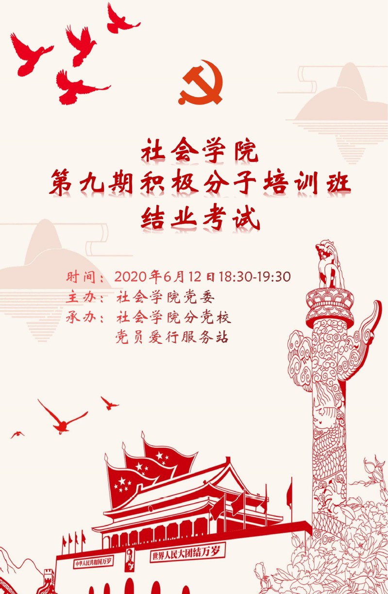 预告|天博体育 分党校第9期积极分子培训班结业考试(海报)