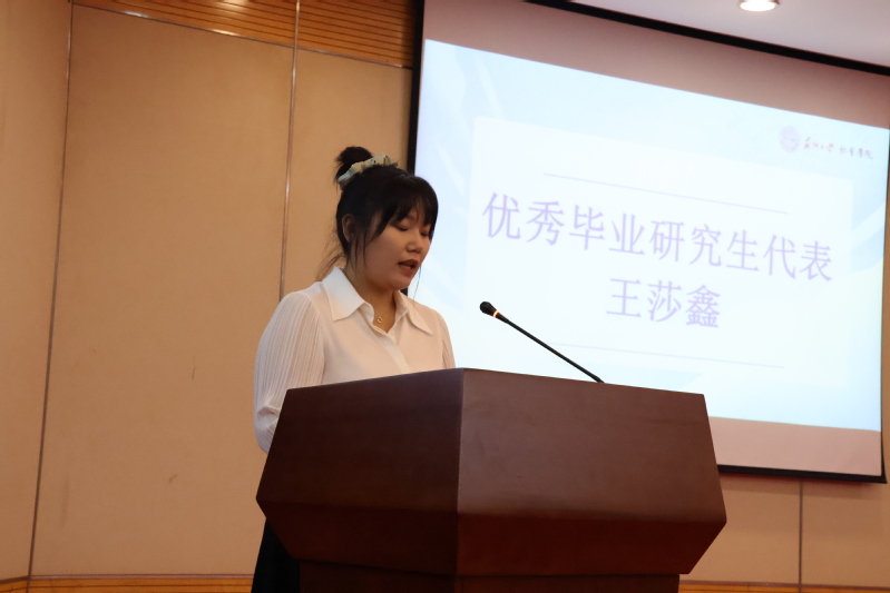 典礼在庄重的国歌声中拉开帷幕。天博体育 院长高峰教授首先致辞,向毕业生们表达了最真挚的祝福与期望,希望各位毕业生在今后的生活中持续释放青春活力,为社会、为国家做出更多贡献。之后,社会学与社会工作系的朱志伟副教授作为教师代表发言,希望同学们养正气、慎言行、抬起头,在各自岗位上发光发热,收获更加美好的未来。优秀研究生代表王莎鑫同学、本科生翟文青同学分别上台致辞,祝愿各位同学积极开拓,勇担使命,并对天博体育 的栽培致以真切感谢。