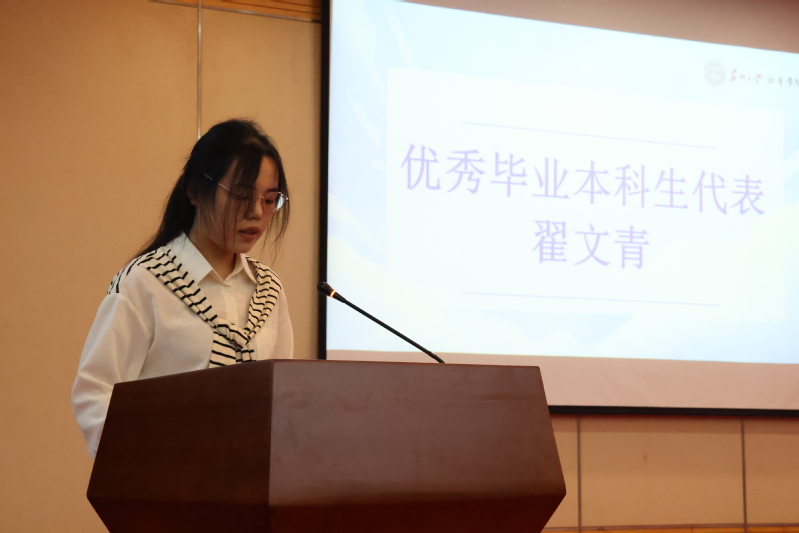 在代表发言后,天博体育 向优秀毕业生代表颁发荣誉证书并赠送毕业礼物,为他们献上美好的祝福。