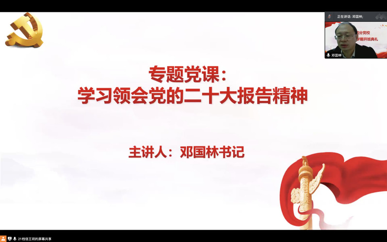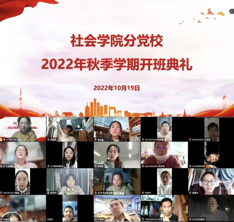 为深入学习贯彻党的二十大精神,扎实推进党史学习教育常态化长效化,加强党性修养锤炼,提高党员发展质量,10月19日下午,天博体育 分党校2022年秋季学期开班典礼暨第一次党课活动在线上平台顺利举行。天博体育 党委书记、分党校校长邓国林,党委副书记兼副院长、分党校副校长朱今,分党校秘书李玲,研究生辅导员朱星洁,本科生辅导员孙帅以及各学生党支部书记、副书记出席活动。天博体育 第14期积极分子培训班、第68期党的基本知识培训班、第47期预备党员培训班全体学员以及分党校工作人员参加活动。活动由2021级图书情报与档案管理类专业王玥同学主持。