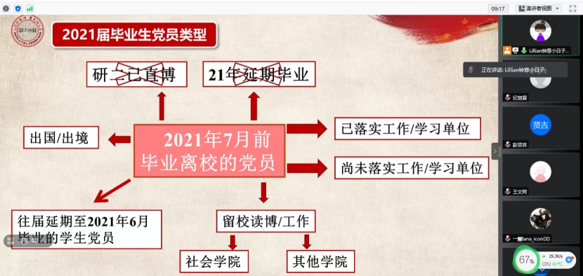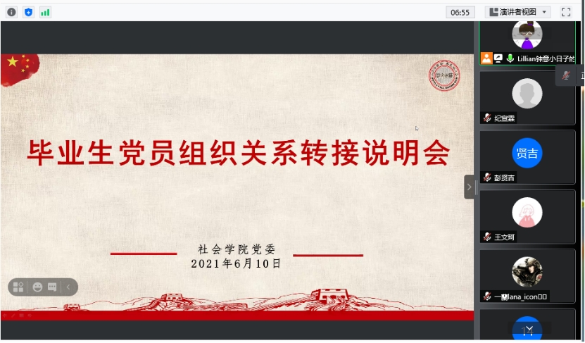 为有序推进毕业生党员组织关系转接工作,强化管理规范,为毕业生提供服务与相关指导。2021年6月10日中午,天博体育 以腾讯会议的形式组织召开了2021届毕业生党员组织关系转接说明会。此次会议由天博体育 组织员李玲老师主持,天博体育 2021届全体本科与研究生毕业生党员参加。