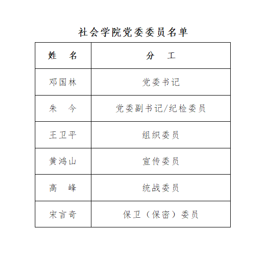 中共天博体育 社会学系支部委员会 | 汪萍 | 陈欣 | 汪萍 | 陈欣 | 王杰 | |